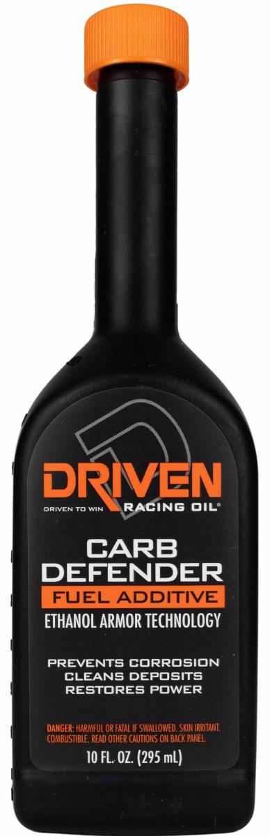 Driven Carb Defender Fuel Additive is specifically formulated to protect against Ethanol corrosion and induction deposits. Special corrosion inhibitors work to prevent expensive repairs and diminished performance caused by Ethanol-blended pump gasoline and the moisture it attracts. These additives control combustion chamber residue, plus they clean and protect surfaces of the fuel system and intake tract. One of Carb Defender’s most important functions is that of a fuel stabilizer that ex-tends fuel storage life. The additives treat up to 25 gallons of Ethanol-blended gas. Carb Defender should be used with each and every fill-up for a 54% improvement in cleanliness and sustained benefits for 3,000 miles.