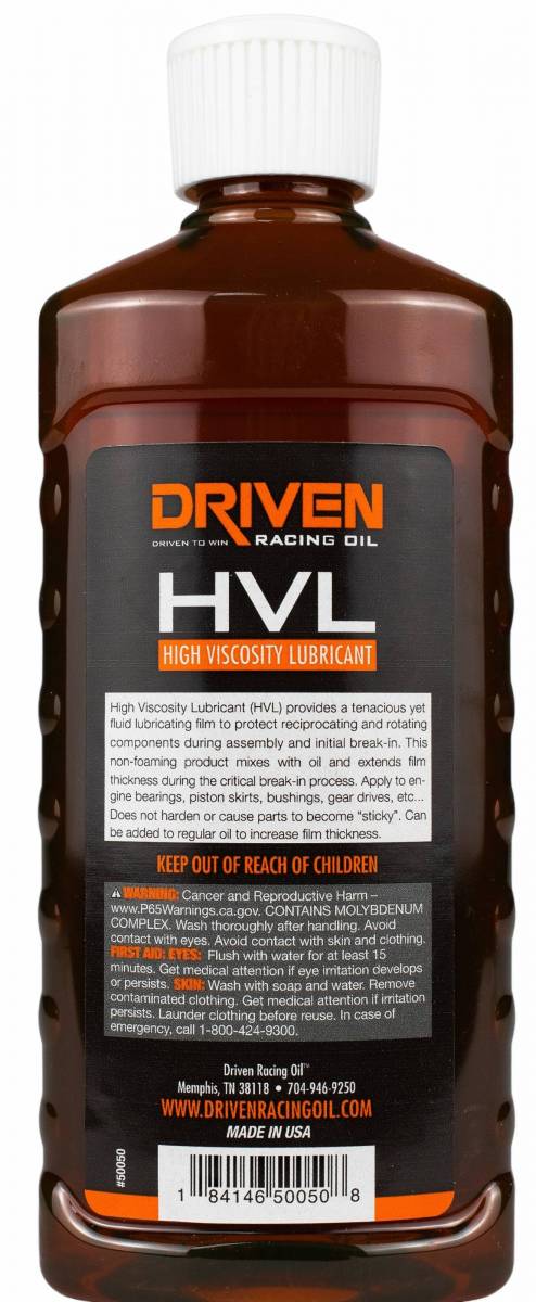 High viscosity assembly lubricant (HVL) provides a tenacious yet fluid film to protect reciprocating and rotating components during assembly and initial break-in. This non-foaming product mixes with the break-in oil and extends the oil film thickness during the critical break-in process. Fortified with ZDDP. Apply to engine bearings, piston skirts, bushings, timing chains and gears, as well as oil pump gears. HVL will not harden or cause parts to become "sticky."